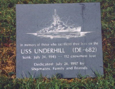[Home] [New Additions] [About Underhill] [July 24th 1945] [Crew Information] [Kaiten Information] [Stories] [Reunion Information] [In Memory] [News & Events] [Indianapolis Story] [Postal Markings Underhill] [Children -  Underhill] [Henry A. Lord] [History Channel] [Waggy News Article] [The Last Convoy] [Victory Walk] [Belated Medal] [Medals To Survivors] [Permanent Memorial] [Photos Page] [Links] [Guest Book] [Founding] [Dedication] [Site Award] [About This Site]